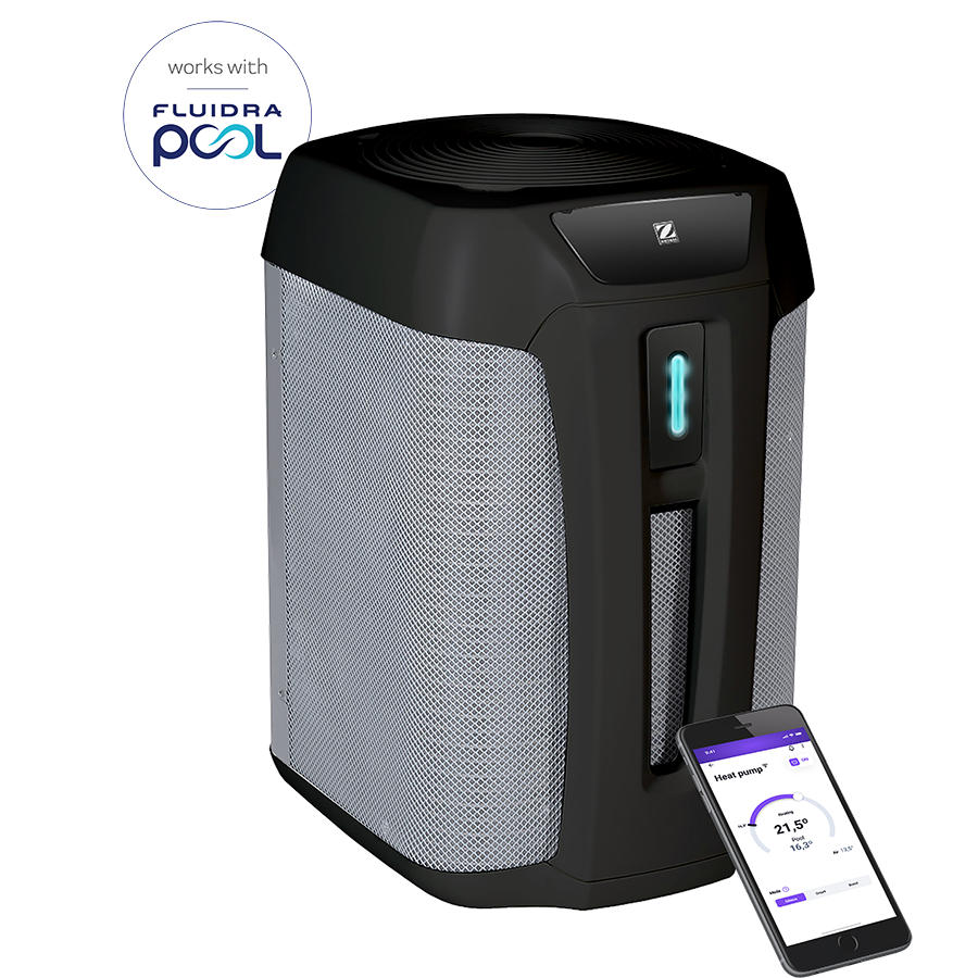 Contrôlez votre PAC à distance via l’application Fluidra Pool / iAquaLink™ (iOS & Android) : réglage de la température, choix du mode, suivi des performances, notifications, mises à jour automatiques.